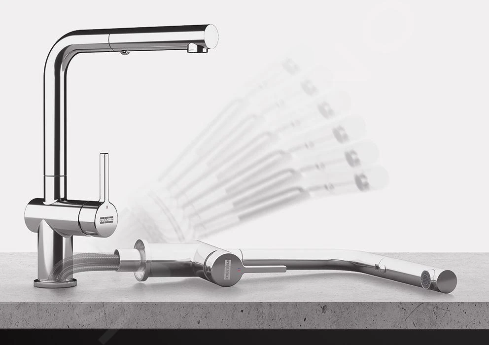 Franke Active New – Keukenkraan FN 6560.031, Neerklapbaar Onder Raam, Met Uittrekbare Handdouche, Chroom 115.0653.391