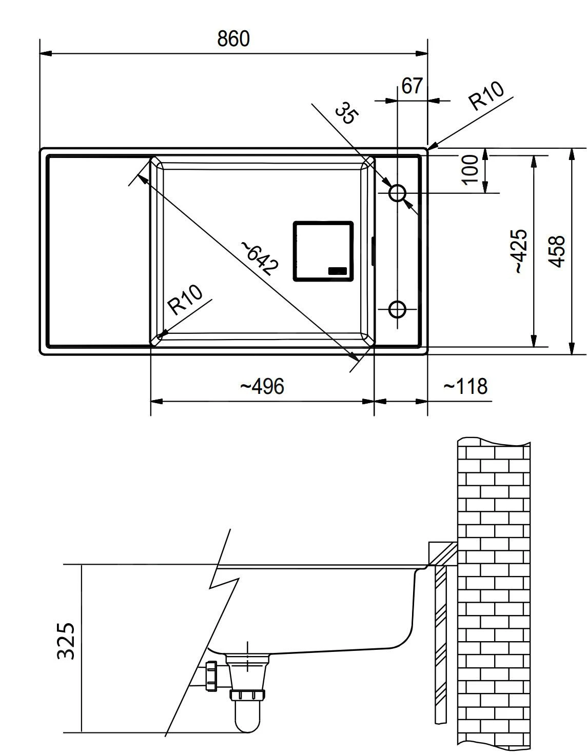 Fragranite spoelbak FSG 211/111, omkeerbaar