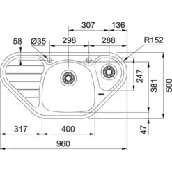 - uitsnede 420 x 480 mm (radius 15 mm)