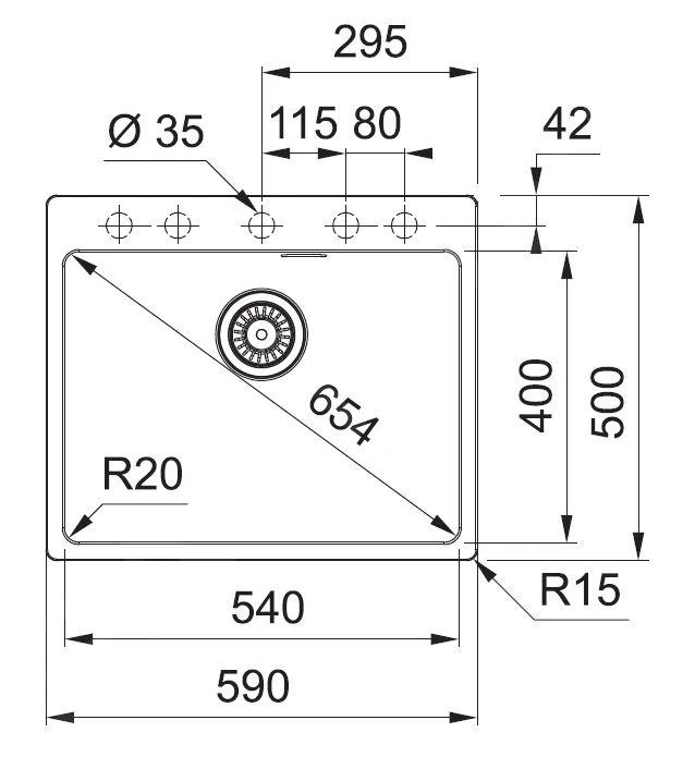 - spoelbak 540 x 400 x 200 mm
