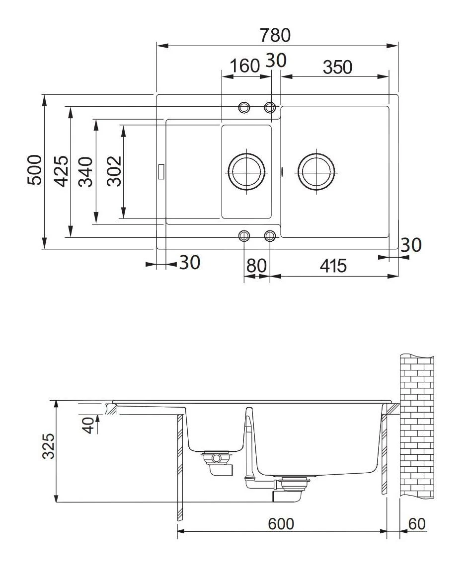 FSG 651-78 spoelbak, reversibel voor in de keuken