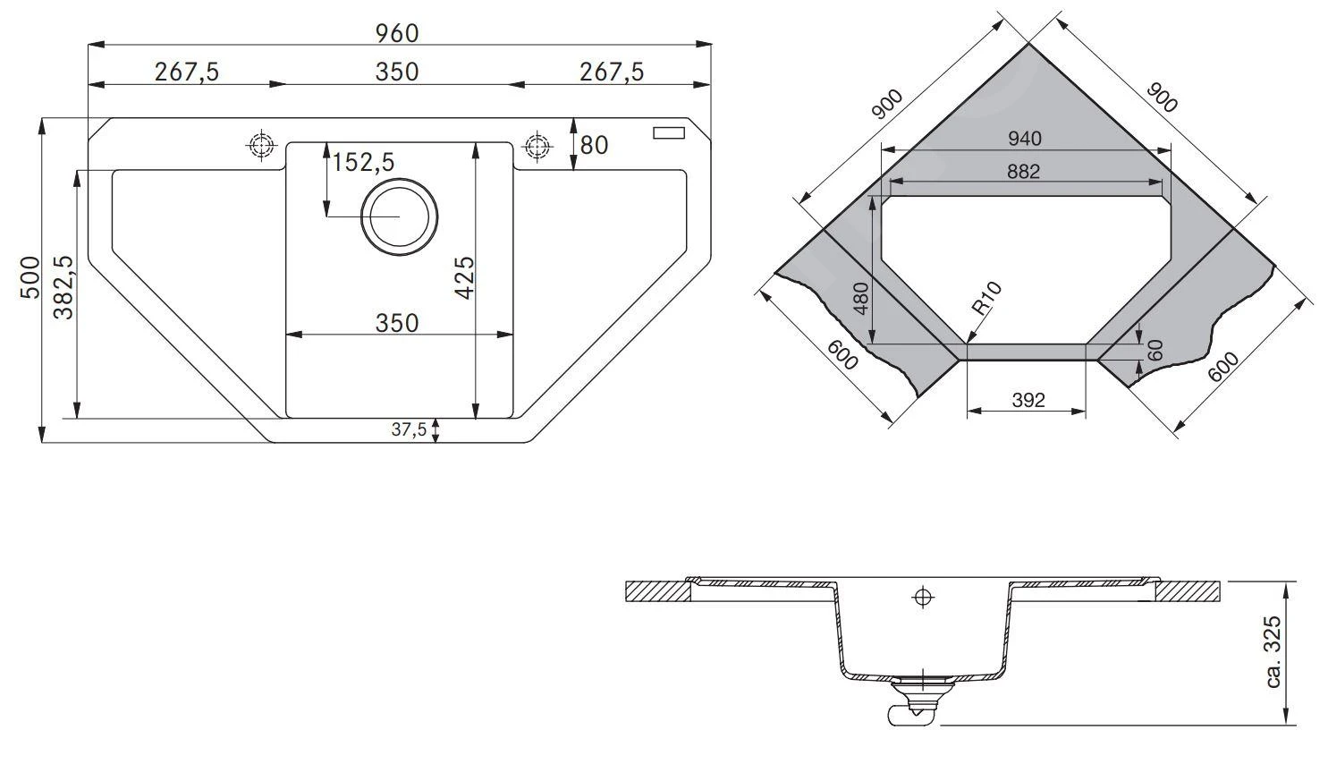 Franke Maris – MRG 612 E Fragraniet Spoelbak, 960×500 Mm, Ijswit 114.0250.568