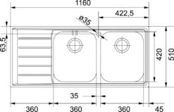 De spoelbak is voorzien van twee gaten. Door het productieproces geldt voor de afmetingen van keramische spoelbakken een grotere tolerantie en kunnen ze met +/- 1% afwijken van de in de technische tekeningen vermelde afmetingen.