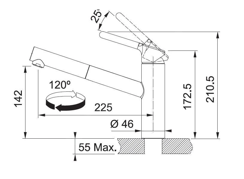 - draaibare uitloop 120°