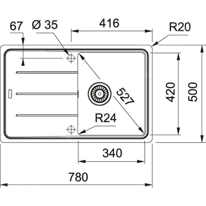 Fragraniet spoelbak BFG 611-78, reversibel