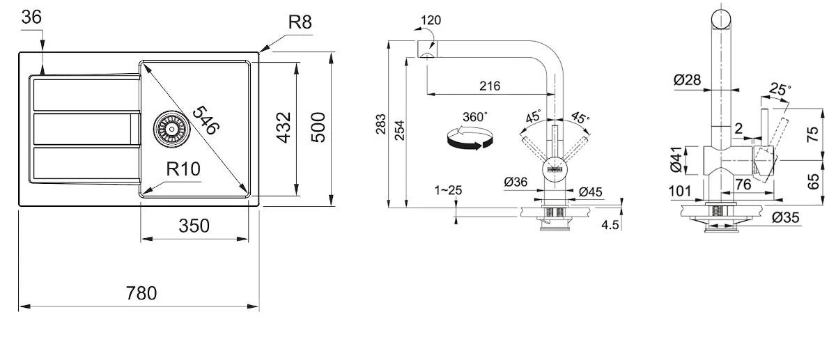 - omkeerbaar, afdruipgedeelte kan links of rechts worden geplaatst