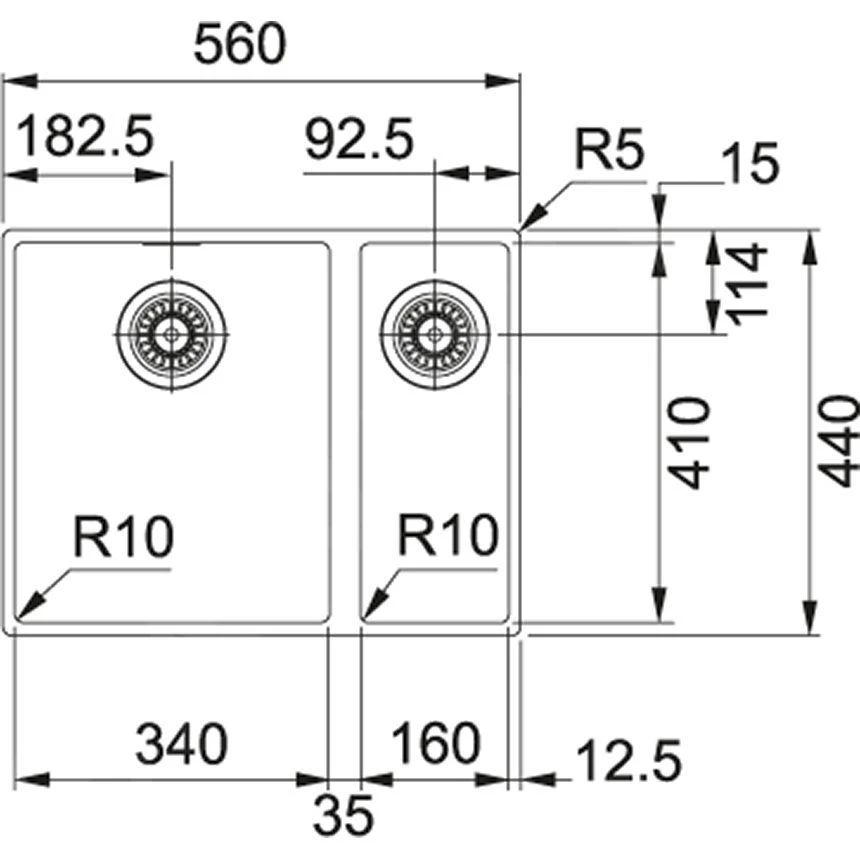 Spoelbak SID 160/2, zonder afdruipgedeelte