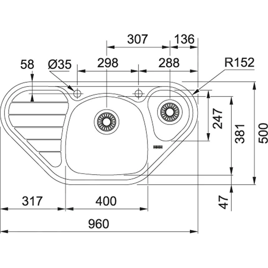SKX 651 E spoelbak met afdruipgedeelte links