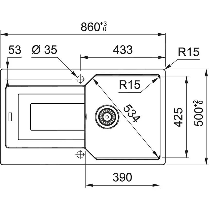 UBG 611-86 spoelbak, reversibel afdruipgedeelte